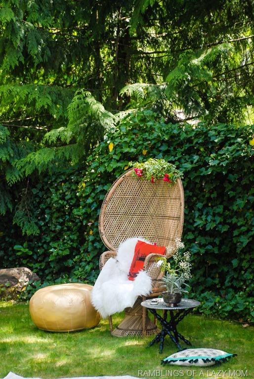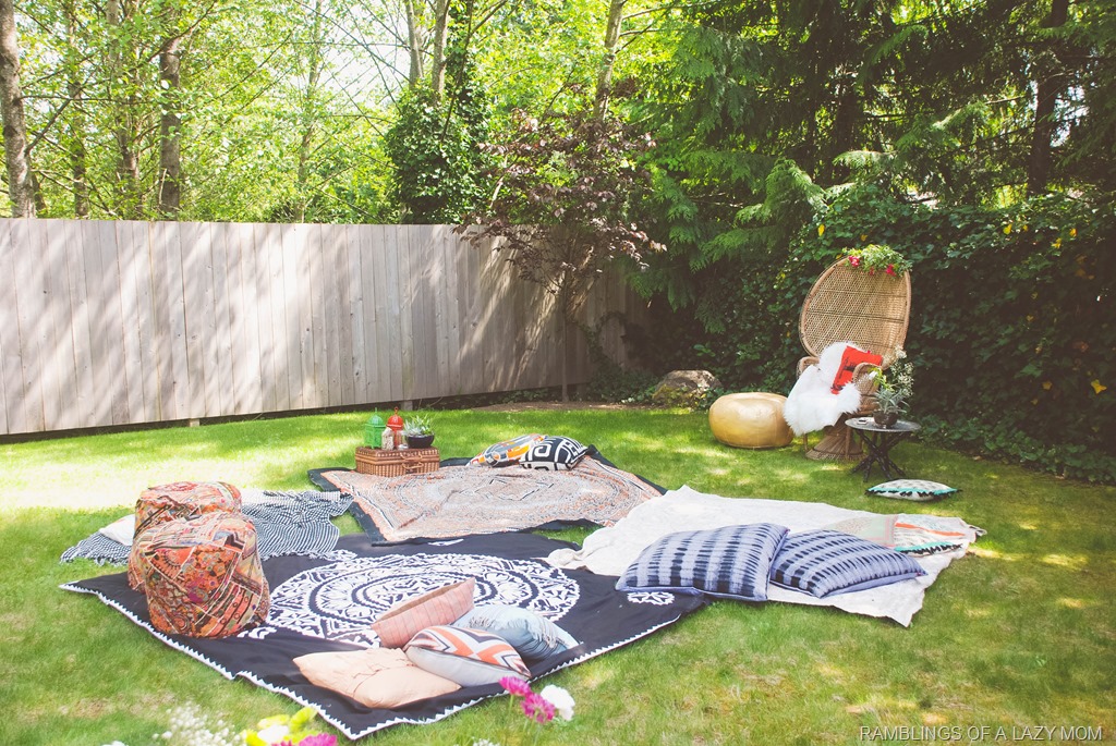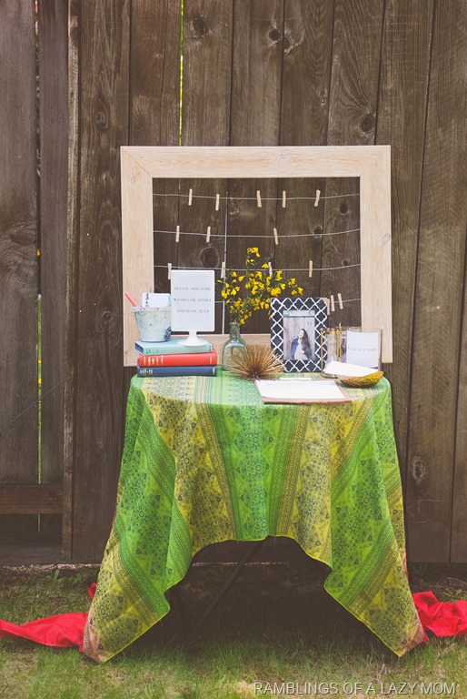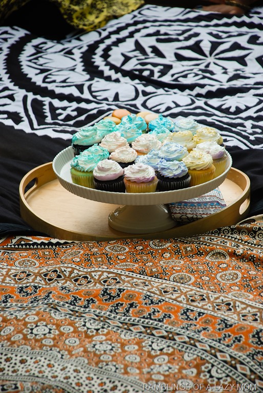 This friend is a diva and has absolutely amazing taste in everything so we really wanted to shower her with an event that reflects a little bit of that. Our inspiration was to have a boho-eclectic feel around the gorgeous Anthropologie dress she was planning to wear and we improvised with things that we already had for the décor. As you can tell everything for the décor including the wicker chair/poufs/throws/rugs/throw pillows/décorative items etc. were from our own houses including a lot of stuff from the lady of the day herself 😉