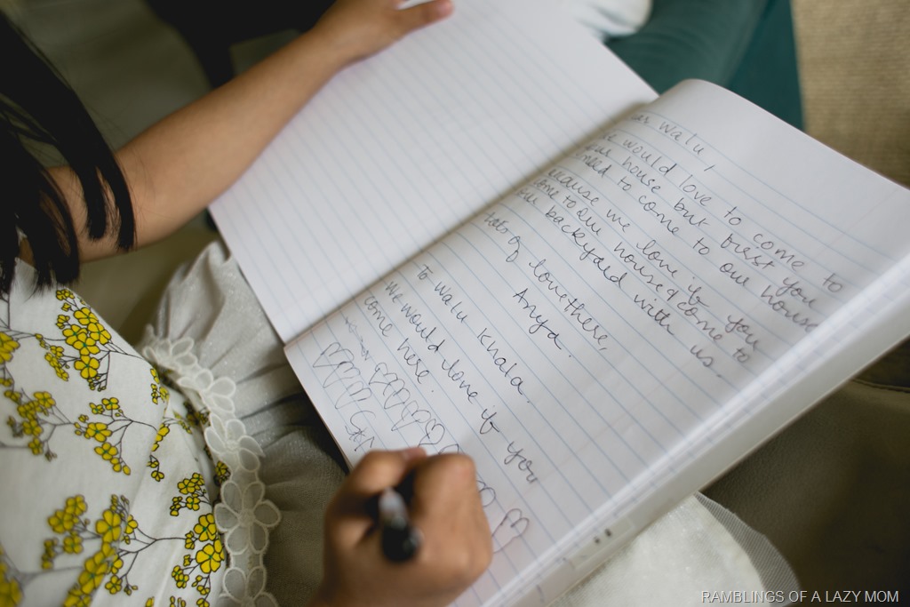 After seeing this idea on a cup of Jo (which happens to be one of my favorite blogs btw), I have been doing this with Anya and it is so sweet! I cant seem to find the original post to link up, but the idea is basically to get your little one to read out a letter that he/she wants to write and you write it for them. The first time I asked Anya to tell me what she wants me to write, she loved the idea and has since then made me write multiple letters and cards for her daddy and our families.