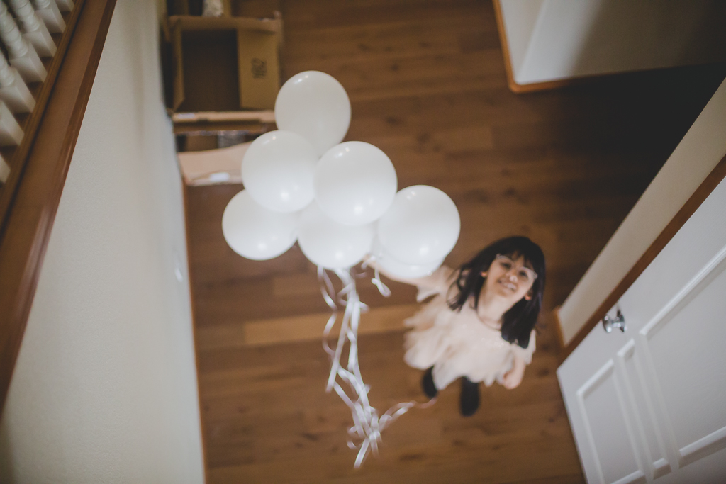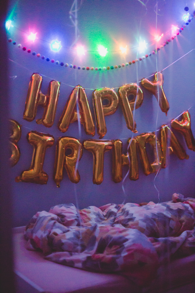 Just like every year, I tip toed into her room the night before to set up a birthday morning surprise. Ordered the Happy Birthday foil balloons from Amazon (link – love that they were super easy to blow using the straw they came with) and picked up white helium balloons from Safeway.
