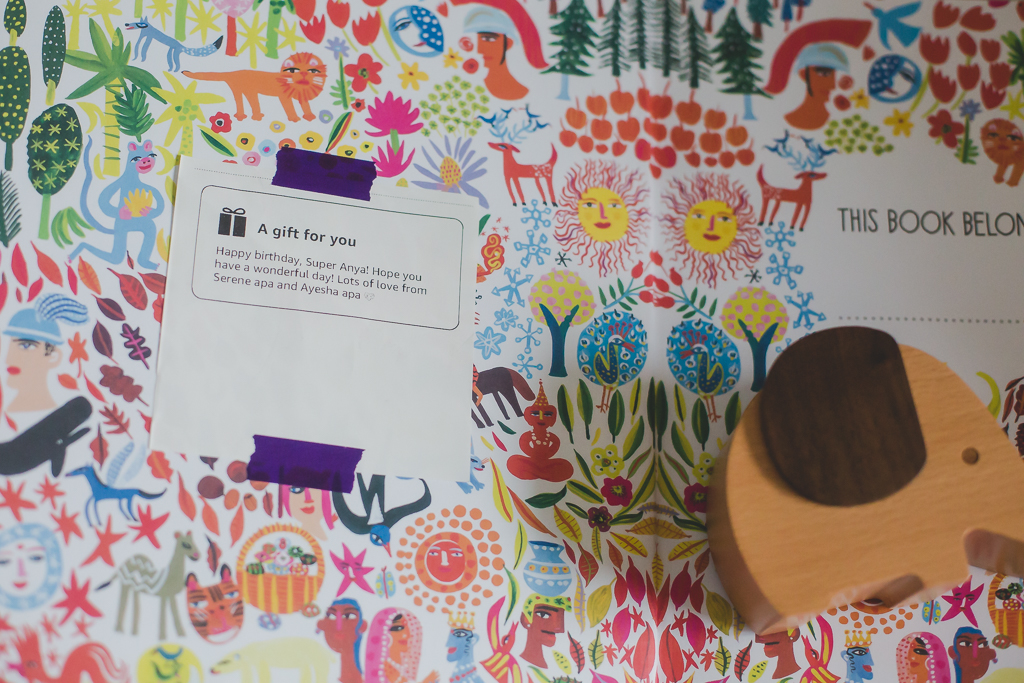 This year, she was such a lucky kid to have a pile of deliveries waiting for her to open on the big day, one from her Nadu khala, one from her cousin apas & one from her nani.