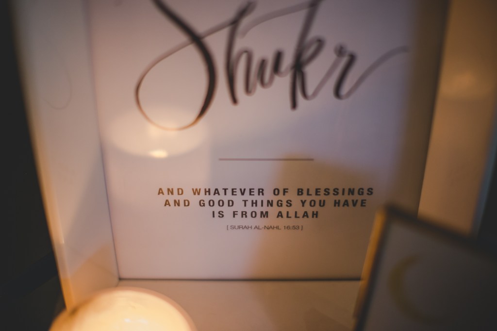 I really really love the “Shukr” print I purchased last year (linking below) with the reminder from the Quran that I personally need daily. It was supposed to be printed out properly and hung up on a wall; or that was the plan but only happened now so imperfectly. It still really makes me so happy though!