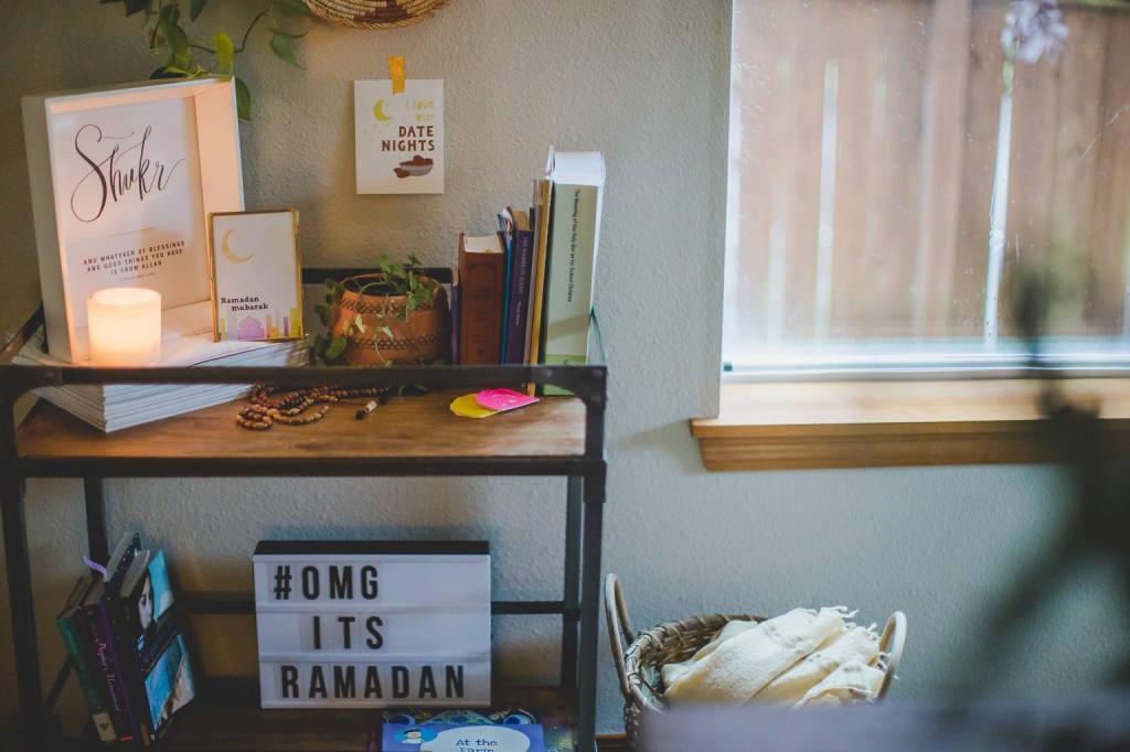 Back in the beginning of Ramadan, I shared this little spot in the corner of our dining room to keep our Qurans nearby and handy. I did it last year too and knew then this was something I’d probably be repeating every year in some way, not just because it makes it feel special but also because it’s easy to pull off AND serves a practical purpose!