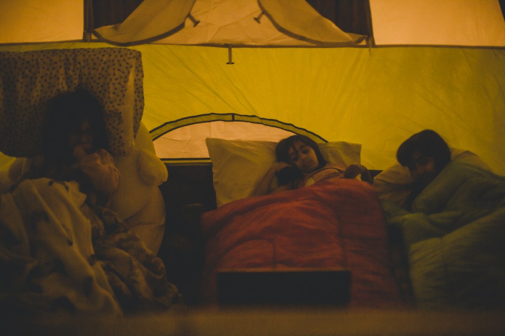 WHAT THEY DID : Setting up, settle in the tent, dinner together outdoors, movie in the tent, giggling and chatting till they fell asleep, lots of park time. It would’ve been fun to involve them in cooking too and doing that outside as well (Bilal has this small stove that we use outside)..